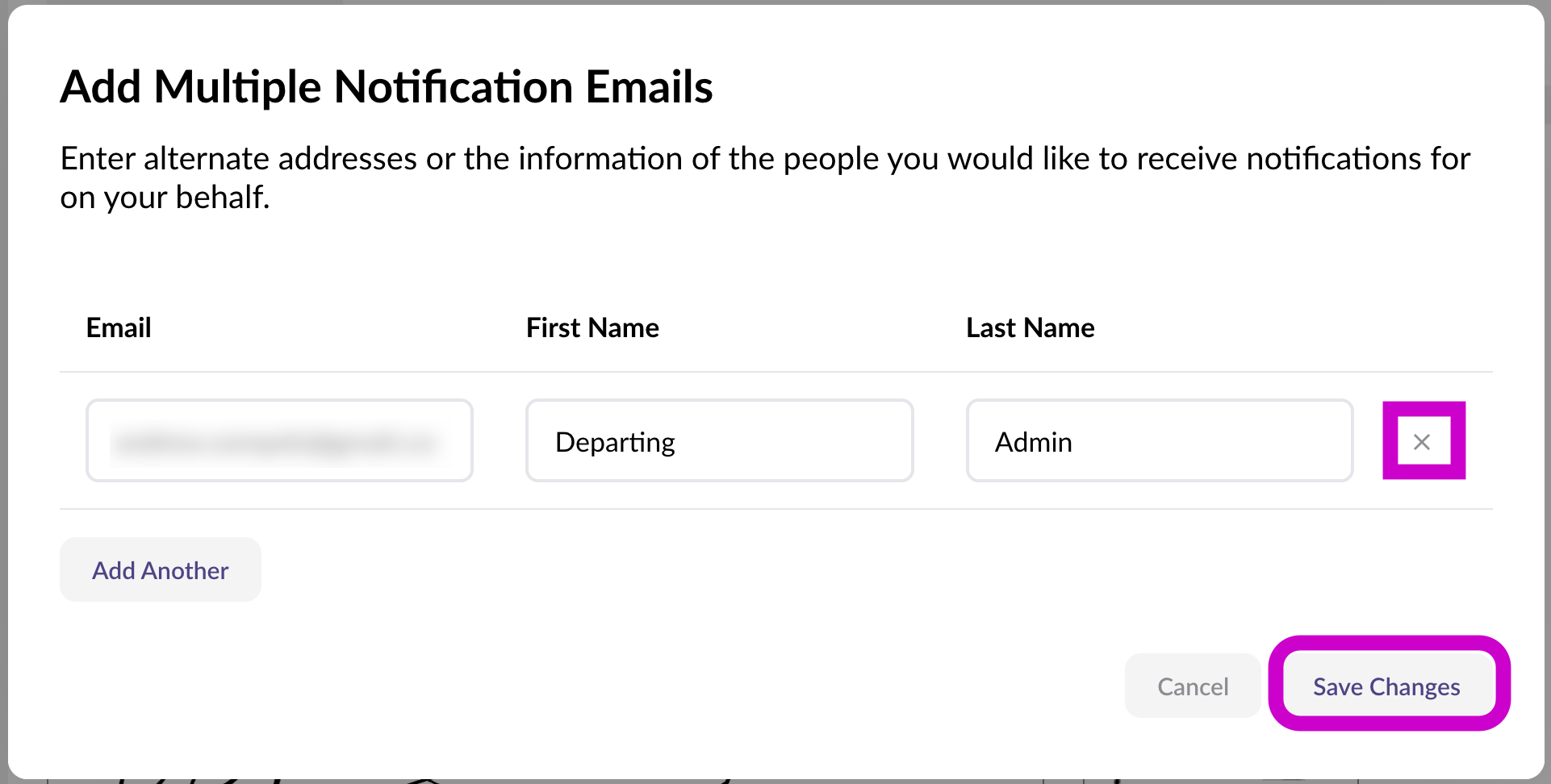 If the departing Admin’s email was added as an Alternative Notification Address in any user’s profile settings, they’ll continue to receive notification emails from OnBoard.