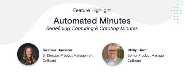 Join us on March 11th at 2 PM ET in a live chat with OnBoard's product team, Heather Hansson and Philip Hinz, as they show you the power of OnBoard's Automated Minutes.