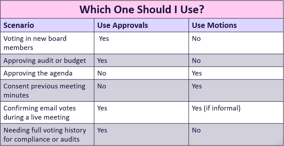 Understanding the difference between the two will have you recording board decisions accurately and efficiently.