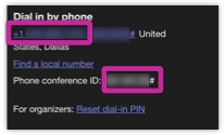 Copy the Dial in by phone number and Conference ID.